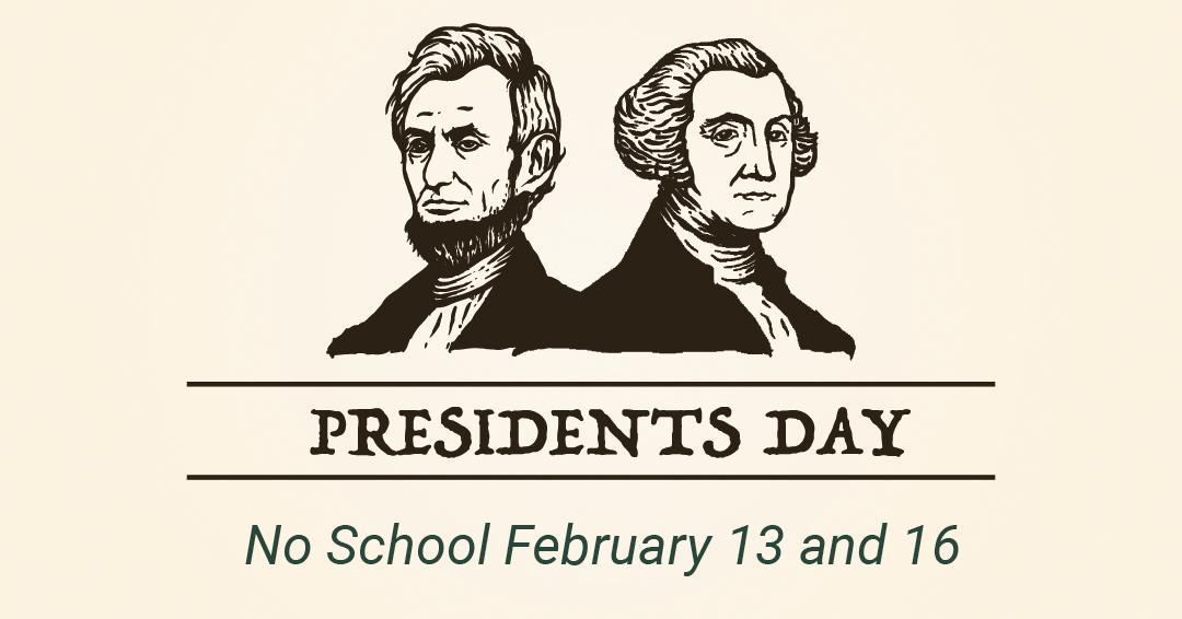 Schools Closed February 13 and 16 No school on Friday, February 13 and Monday, February 16 in honor of Presidents’ Day. Enjoy the long weekend.
